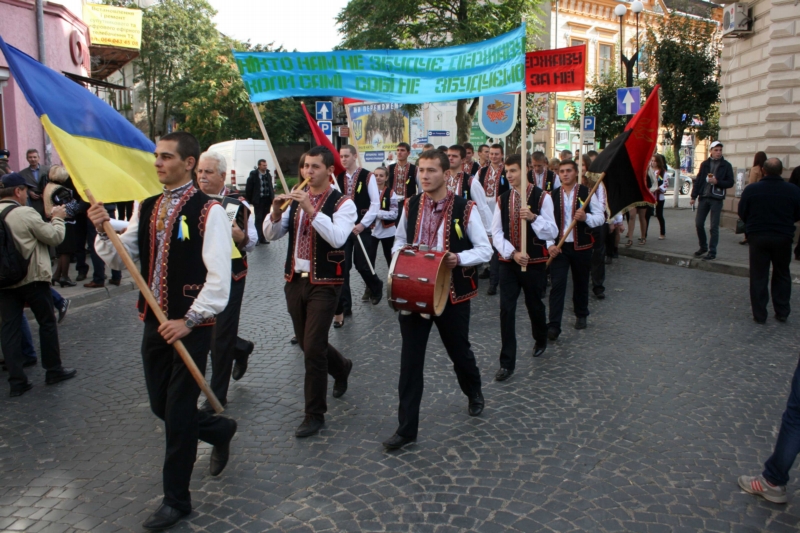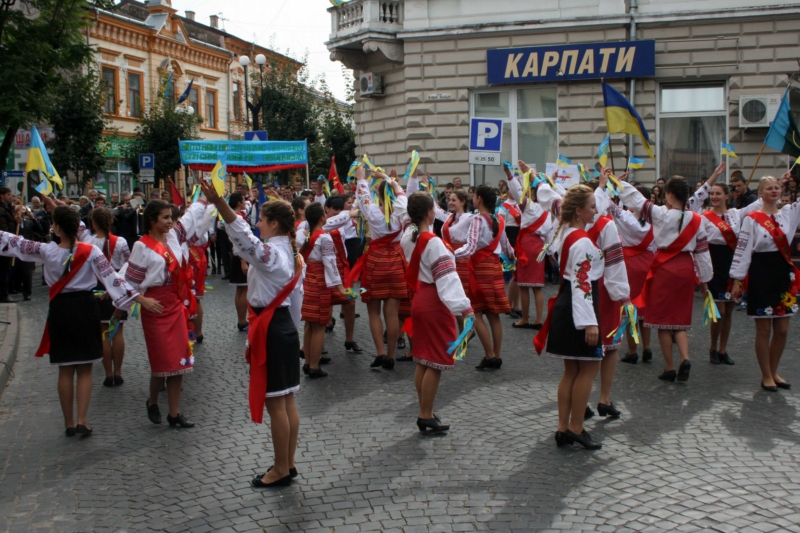 Свято розпочалося урочистою ходою середмістям колони студентів Коломийського педагогічного коледжу та інших навчальних закладів міста під звуки січових мелодій у виконанні муніципального духового оркестру.