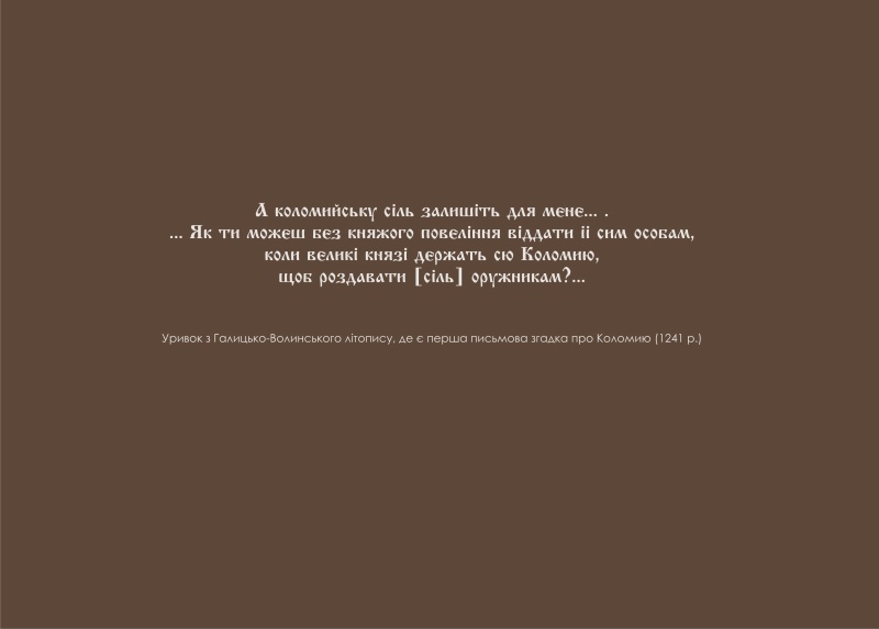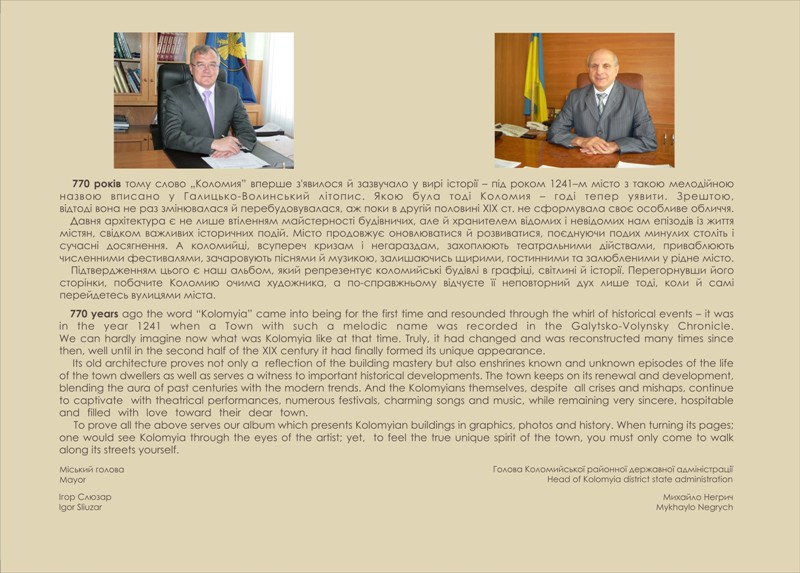 Особлива подяка Коломийському міському голові Ігорю Слюзару та депутатам Коломийської міської ради за фінансову підтримку видання альбому у славну річницю 770-річчя першої літописної згадки про Коломию.