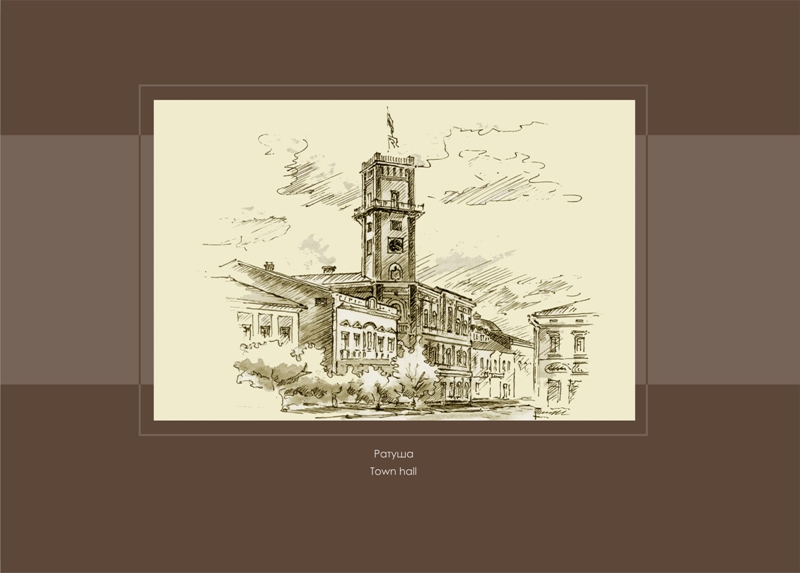 На перших сторінках видання оглядач зустрічає графіки знакових для міста будівель, без яких Коломия не була би тією Коломиєю, яку знають та люблять коломийці та безліч закоханих в неї подорожуючих: Ратуша (1877), Національний музей Гуцульщини та Покуття ім..Й.Кобринського (1902), Музей писанкового розпису (2000), Музей історії міста Коломиї (др. пол. ХІХ ст.), Коломийський академічний обласний український драматичний театр ім. о.І.Озаркевича (поч. ХХ ст.) та Міський будинок культури "Народний дім" (1892).