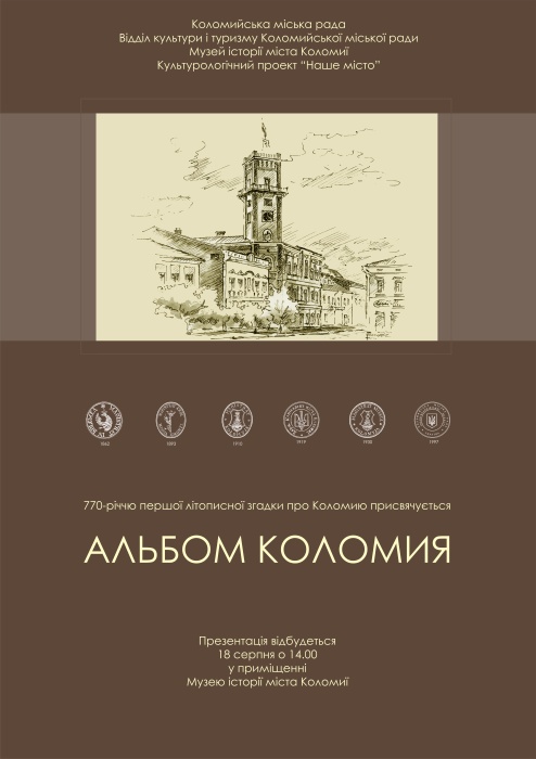 Вшановуючи знаменний ювілей 770-річчя першої літописної згадки про Коломию на кошти Коломийської міської ради за спільної ініціативи відділу культури та туризму Коломийської міської ради, Музею історії міста Коломиї та Культурологічного проекту "Наше місто" світ побачив живописний альбом з лаконічною назвою "Коломия".