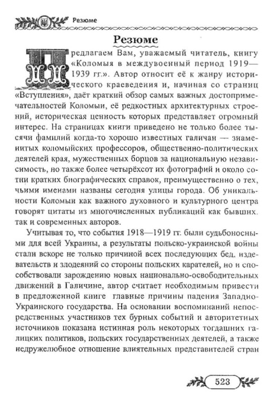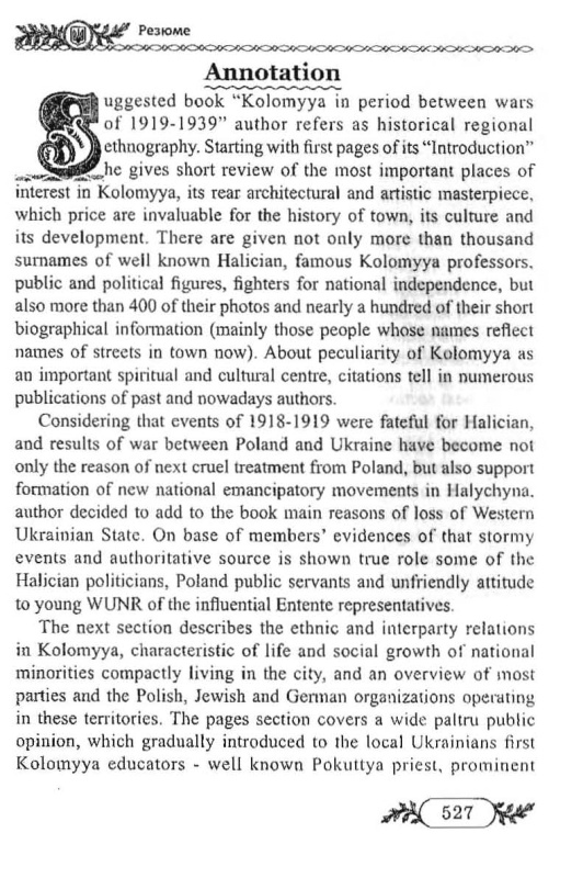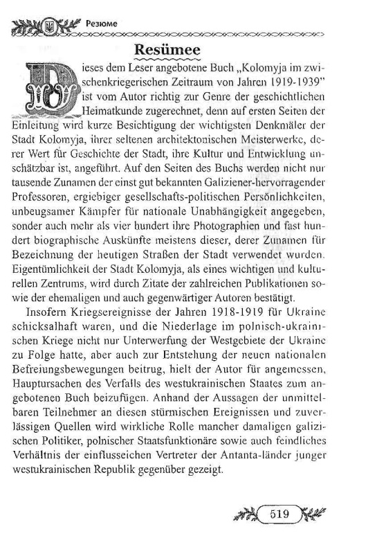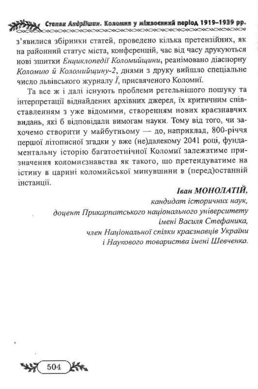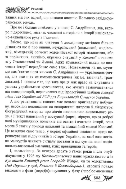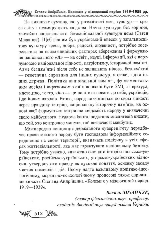 Книжка супроводжена рецензіями знаних науковців, зокрема, Івана Монолатія доктора політичних наук, професор кафедри політології Інституту історії і політології Прикарпатського національного університету імені Василя Стефаника та, що найголовніше, знаного коломиєзнавця; Василя Лизанчука, доктора філологічних наук, професора, академіка Академії наук вищої освіти України.