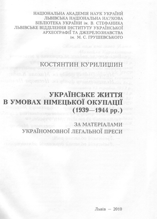 Дослідження Костянтина Курилишина є унікальним, адже воно є першим і чи не єдиним дослідженням невідомої для широкого загалу теми, яке проведене автором протягом багатьох років на основі першоджерел, а саме на матеріалах легальної україномовної преси, що виходила у Генеральній Губернії та Райхскомісаріаті України впродовж 1939-1944 рр.
