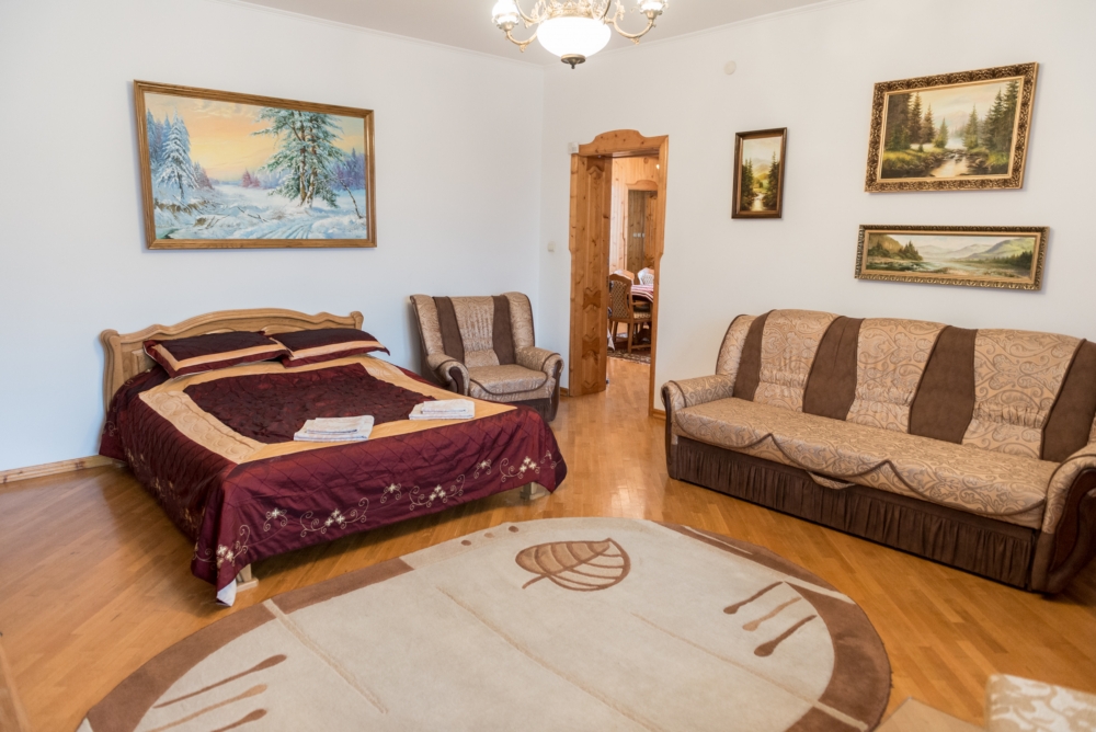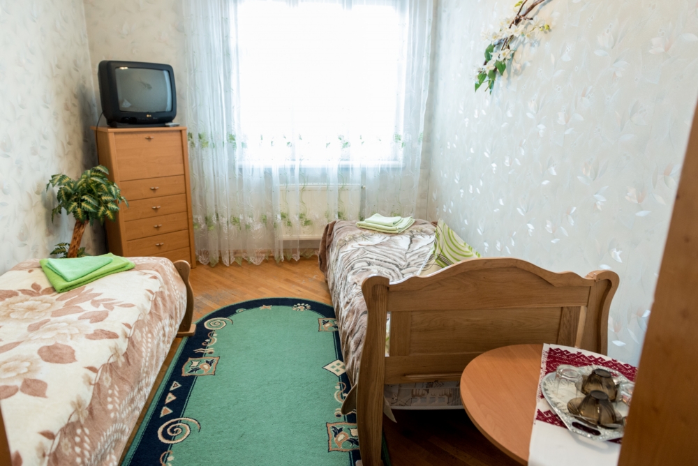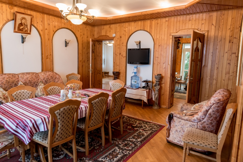 Приватна садиба сімейного типу "Вояж" має 5 номерів (до 12 осіб). Хол та ванна кімната на кожному поверсі. В кожному з номерів кабельне ТБ, електрочайник, фен для сушки волосся.